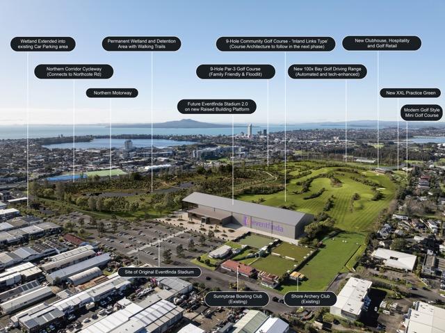 Additionally, the Golf Warehouse proposal also allows for many other activities to be on the A F Thomas Park site. Eventfinda Stadium – which was badly flooded in the January floods of 2023 – would be replaced with a new stadium on a specially raised platform site. There’s a site for Auckland's first pickleball-specific indoor facility (12 courts). There is also a space for a new pump track for the youngsters. The site will continue to include the Shore Archery Club and Sunnybrae Bowling Club.